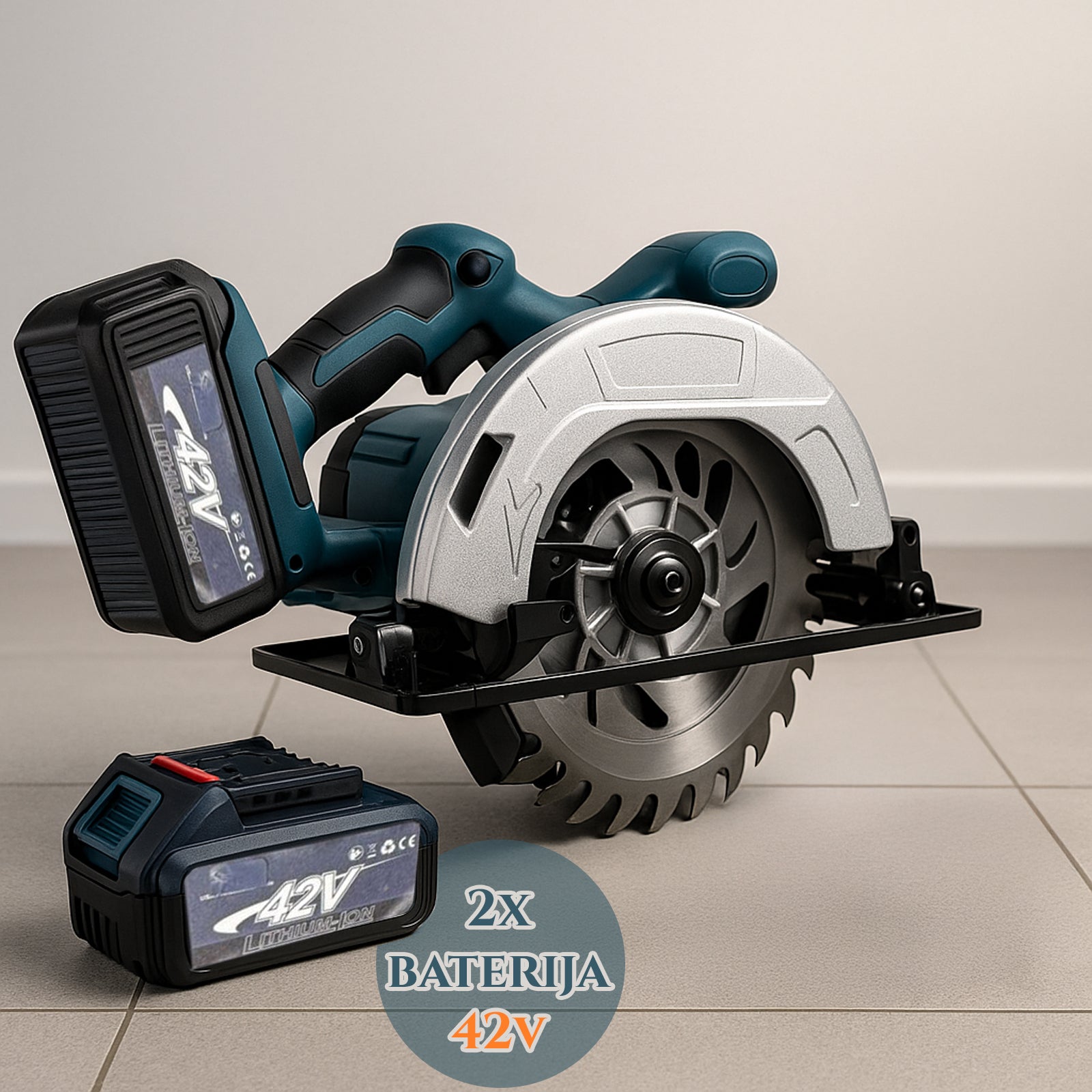 Snažna, praktična i bežična – aku kružna pila s dvije 42V litij-ionske baterije omogućuje neprekidan rad i savršenu preciznost pri rezanju. Idealna je za obradu drveta, ploča i drugih materijala u radionici ili na terenu.