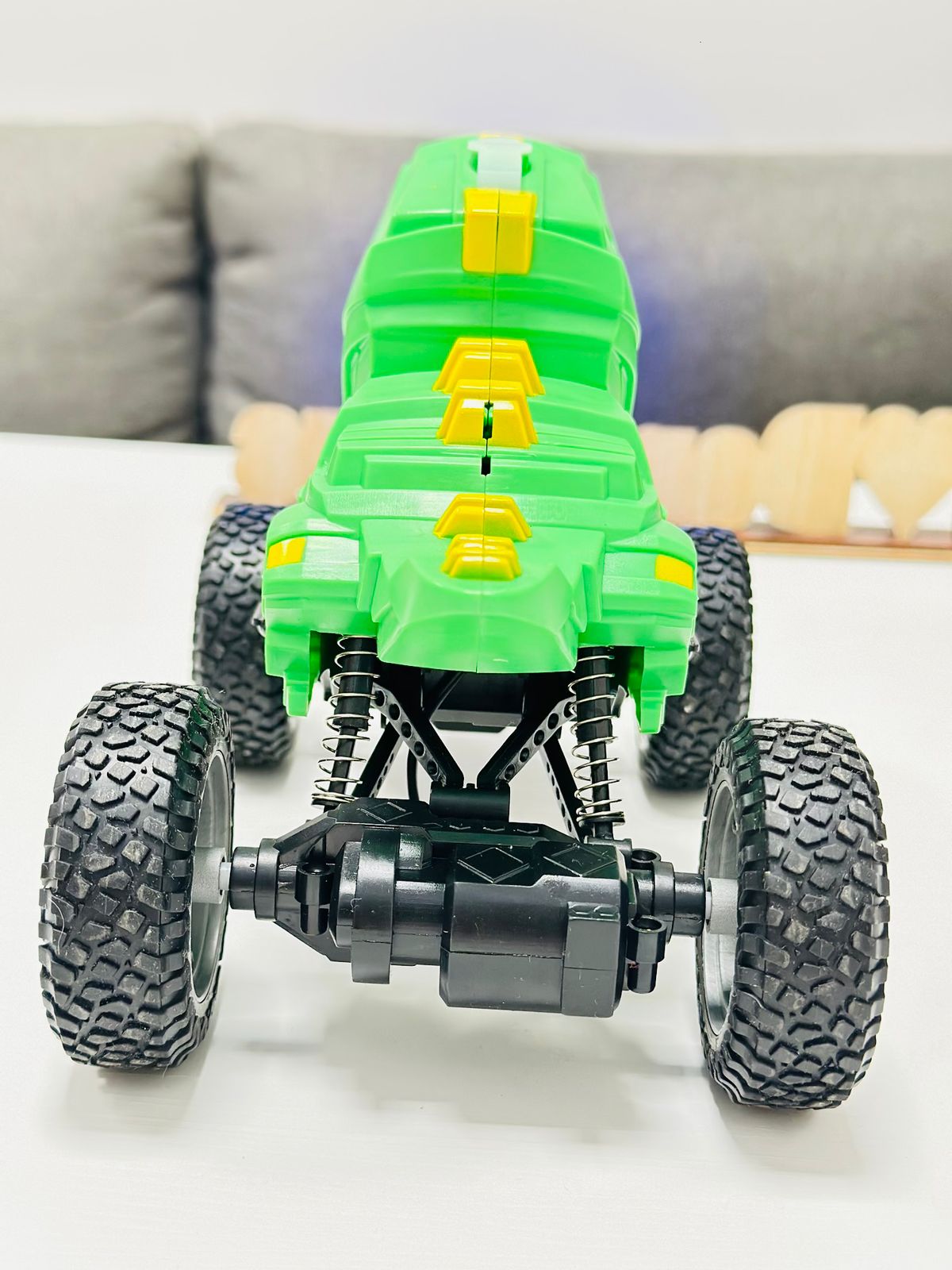 Ovaj 4WD 1:16 dinosaur čudovišni kamion može rotirati za 360°, bočno i dijagonalno zanošenje. Snažni ugrađeni motori s Mcnamm kotačima i oprugama--proizvedeni amortizeri omogućuju veliku brzinu do 12+ milja/h i jednostavnu vožnju svim terenima plaža, travnjaka, tepiha, šljunka itd.