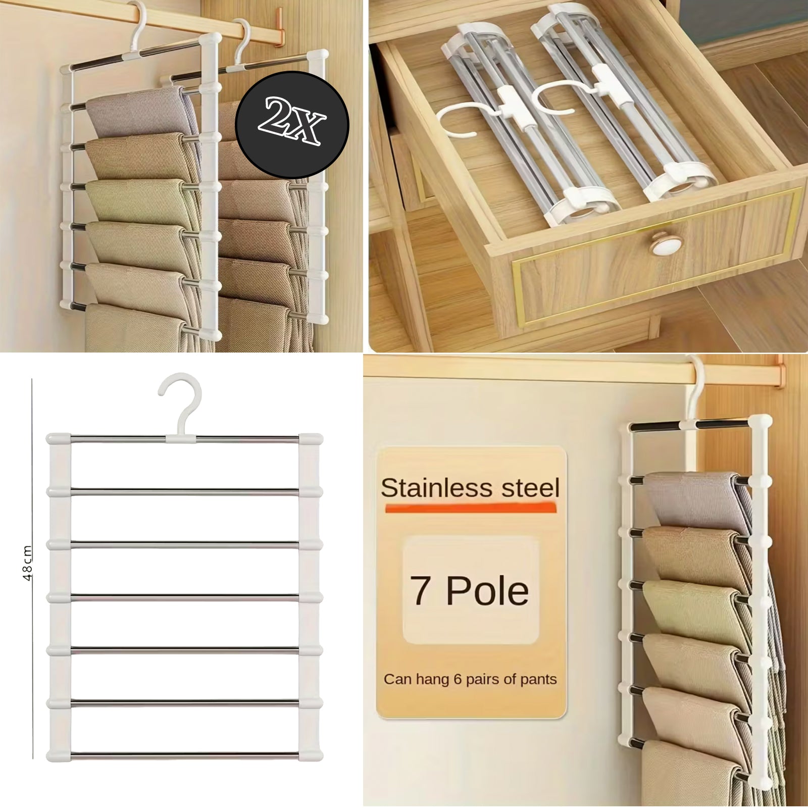 7 čvrstih prečki omogućuje vješanje više komada odjeće bez gužvanja i klizanja.