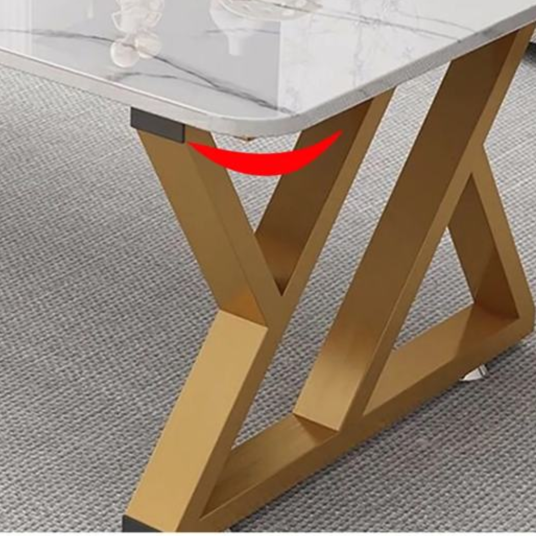 Kombinacija bijele ploče i zlatnih nogu daje prostoru profinjen izgled i moderan karakter.