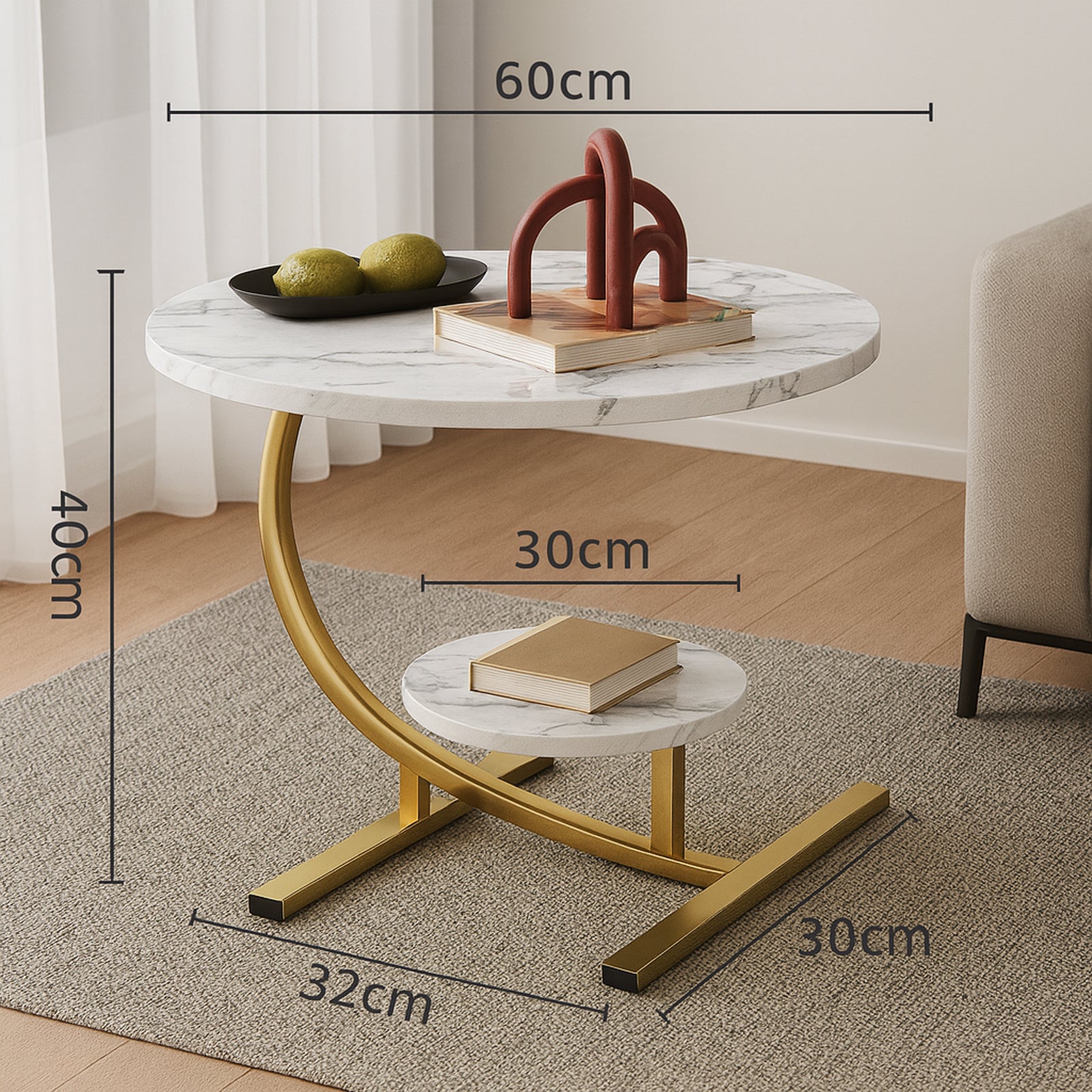 Okrugli stolić s dvostrukom površinom – mramor & zlato
