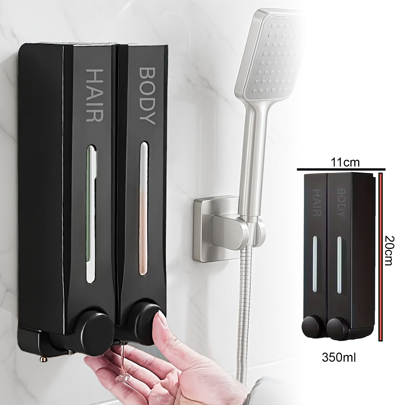 Uredite svoju kupaonicu modernim dvostrukim dispenzerom za sapun, šampon ili gel za tuširanje. Minimalistički dizajn, jednostavno korištenje i maksimalna praktičnost u jednom proizvodu.