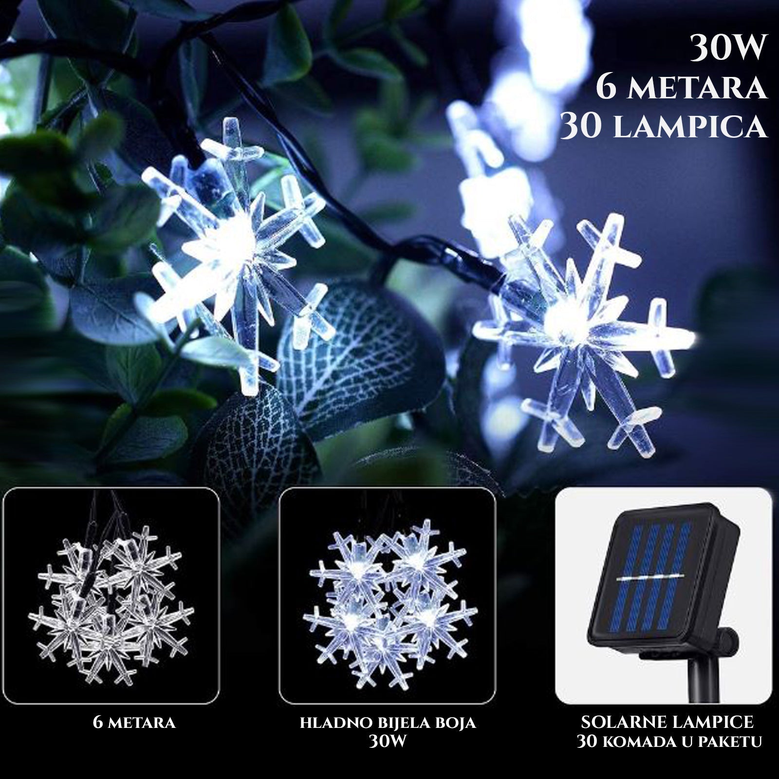 SOLARNE BOŽIĆNE LAMPICE ZA VAN PAHULJICA 6M