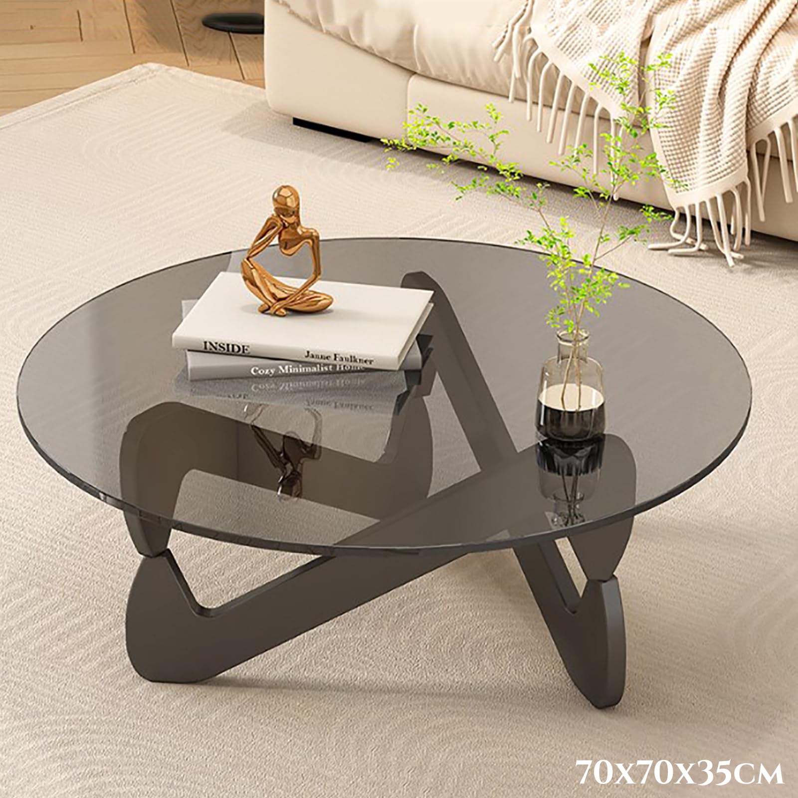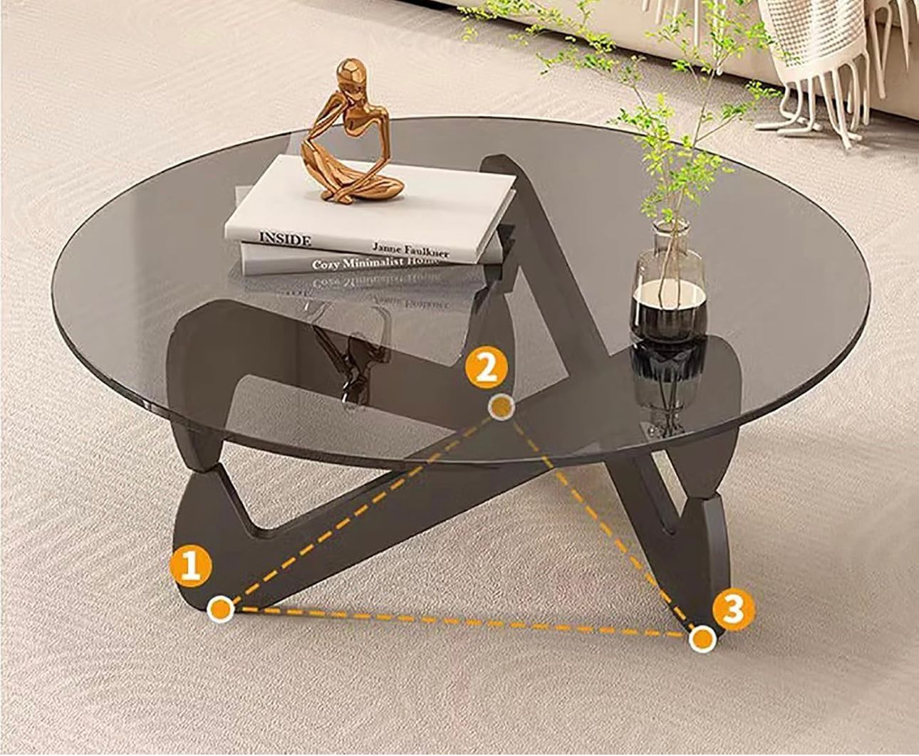 Dizajnerski stolić s asimetričnom bazom i prozirnim staklom – savršen za moderan i elegantan dnevni boravak.