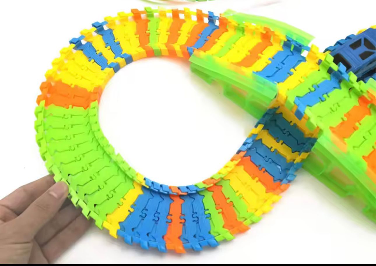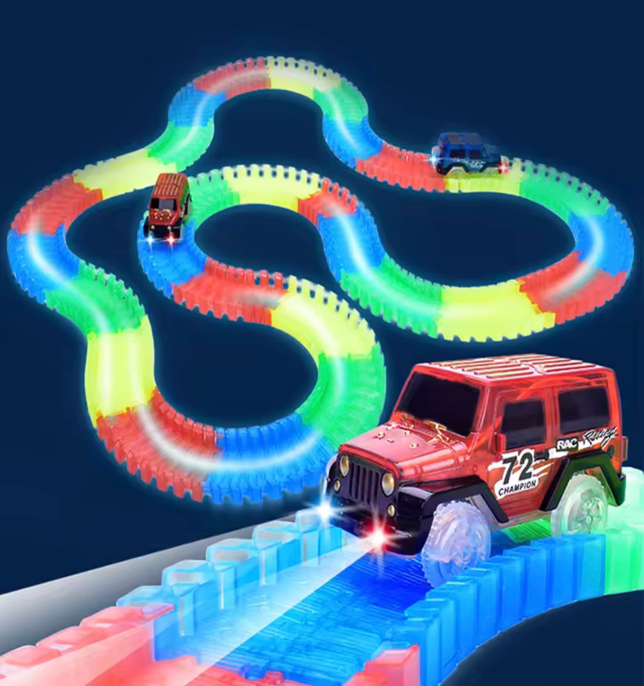 Svjetleća trkaća staza pretvara svaku prostoriju u mali spektakl – idealan poklon za male ljubitelje brzine i kreativne igre!