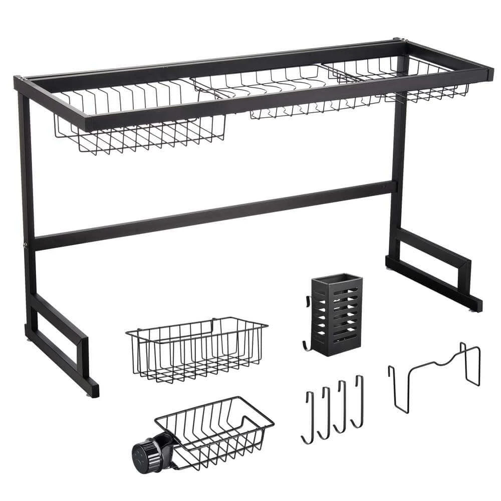 Moderan i praktičan stalak za posuđe s više razina organizacije omogućuje odlaganje tanjura, čaša, pribora, noževa i kuhinjskih dodataka na jednom mjestu. Postavlja se izravno iznad sudopera, što omogućuje da voda prirodno otječe i vaša kuhinja ostaje čista i uredna. Dostupan je u dvije dimenzije: 65 cm i 85 cm, prilagođene različitim širinama sudopera.