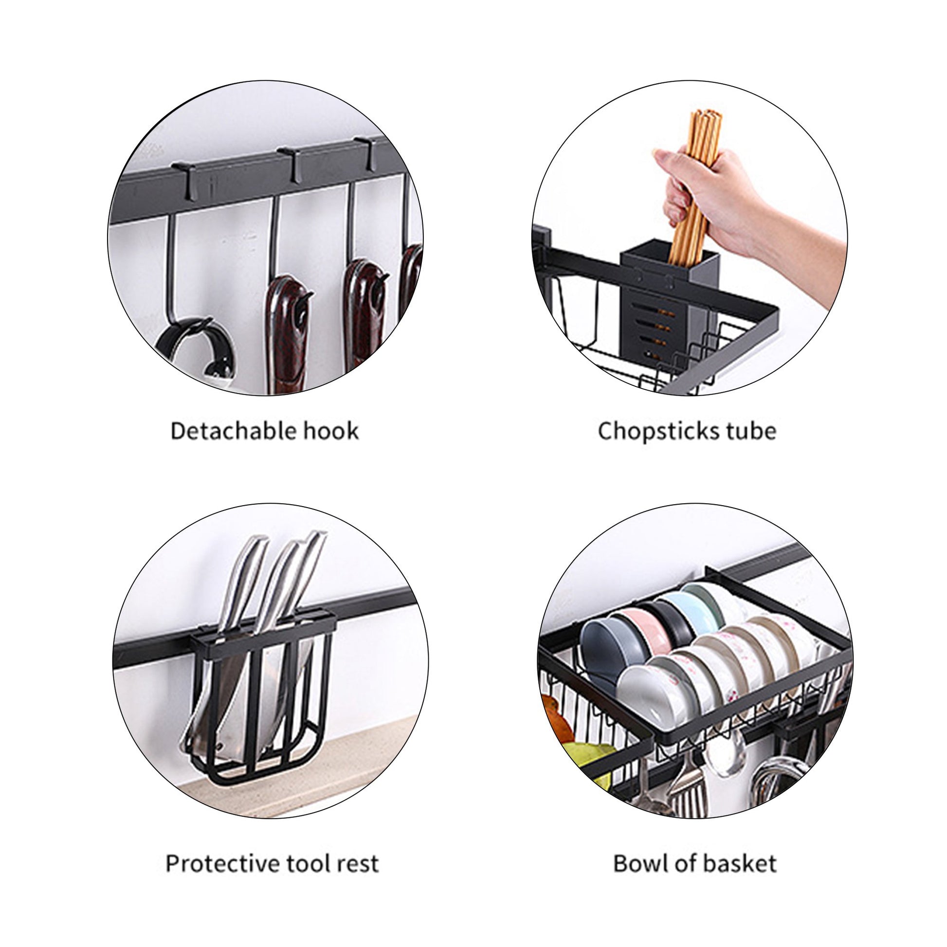 - Funkcionalnost: držač tanjura, čaša, pribora, daske, boce i začina