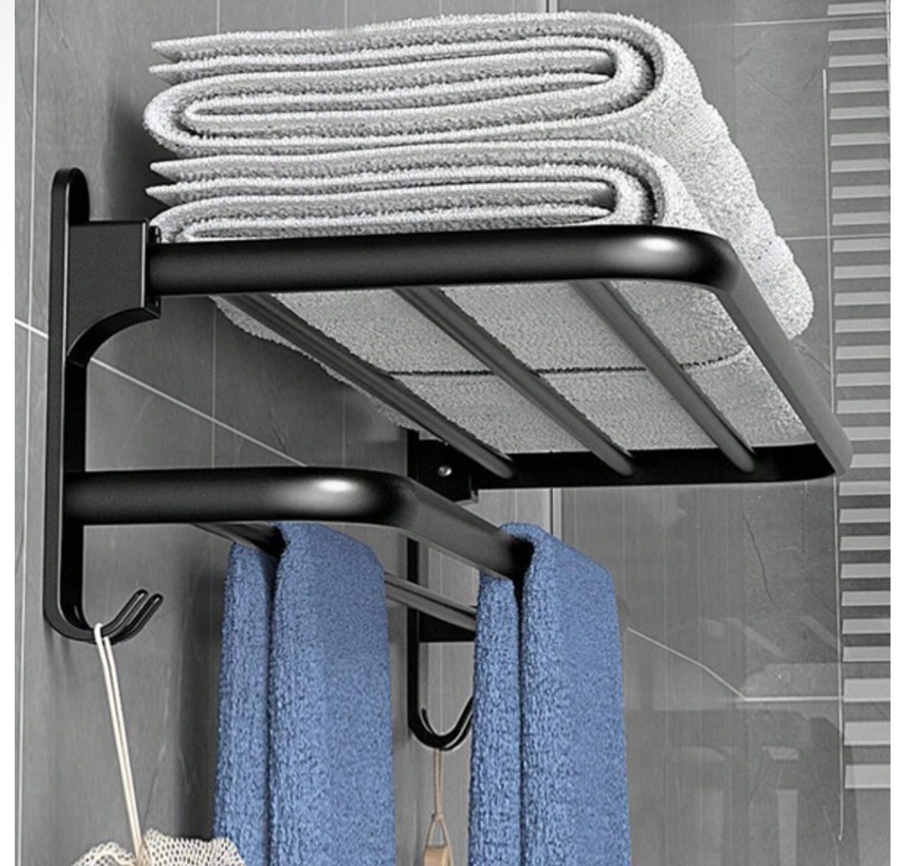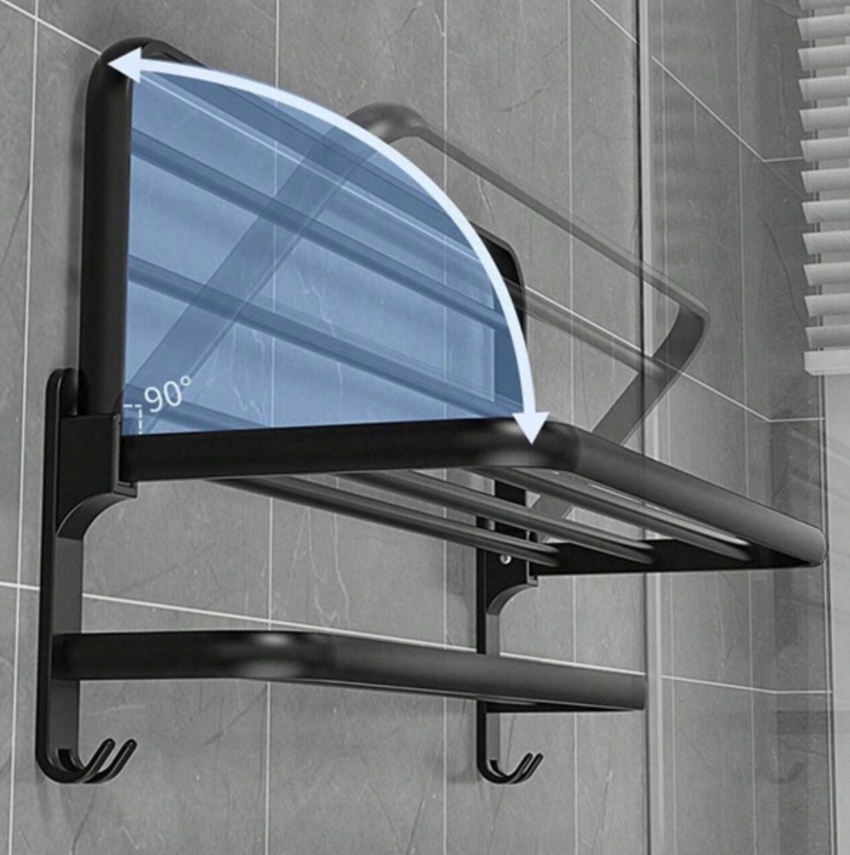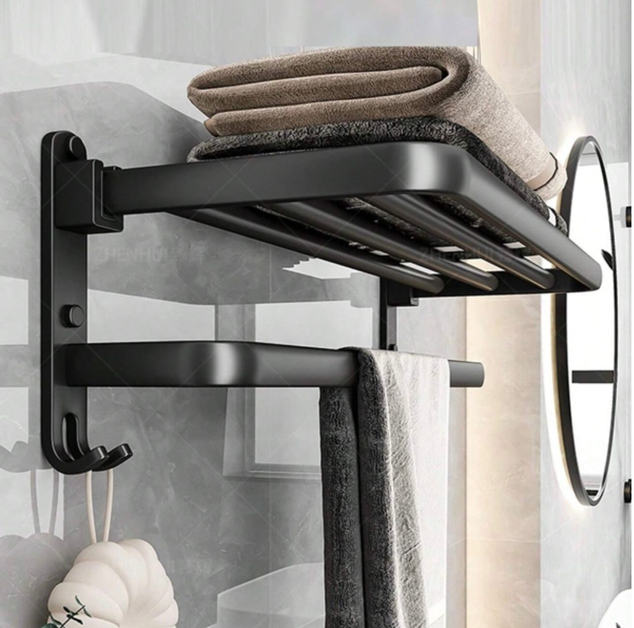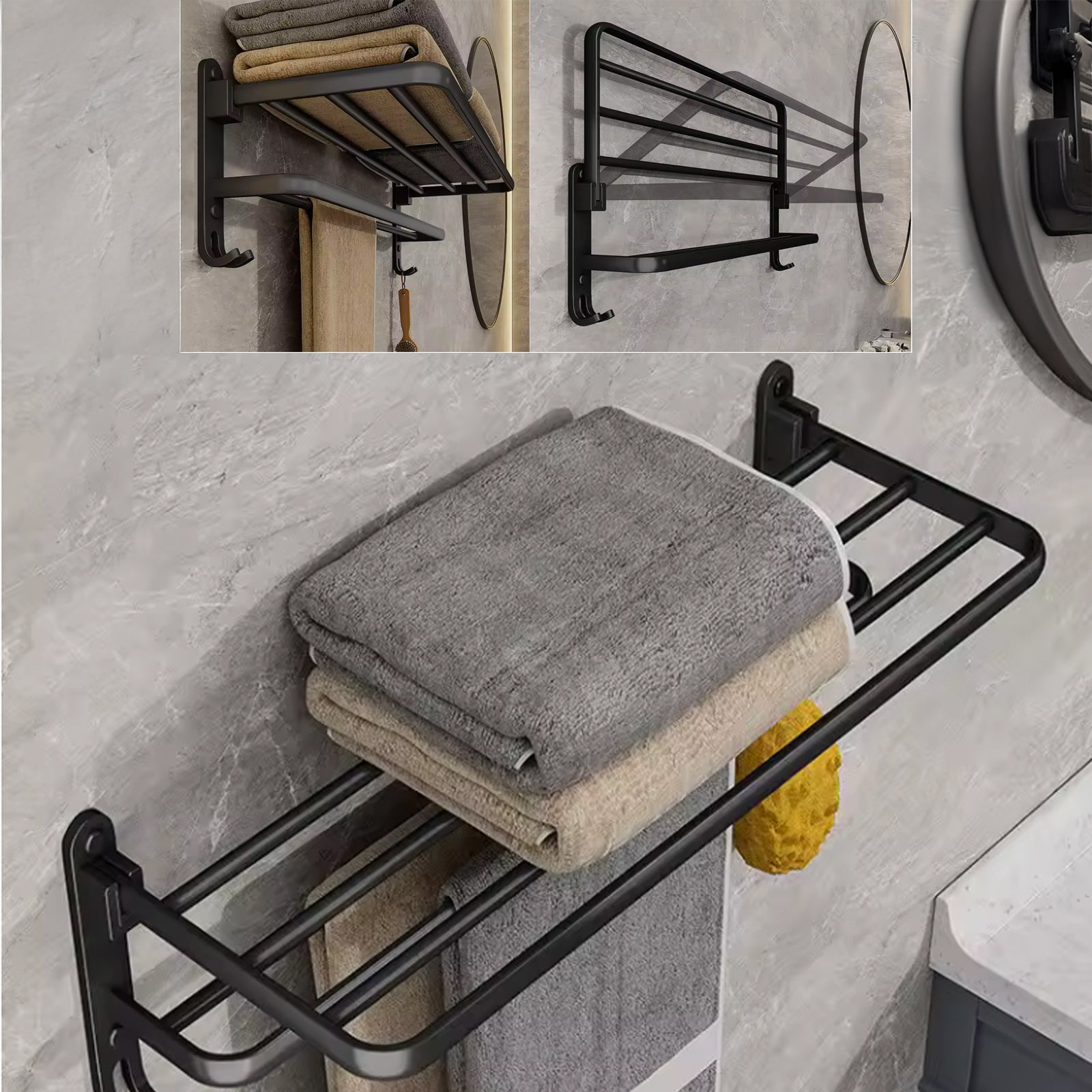 Gornja polica savršena je za slaganje ručnika i kupaonskih proizvoda, dok donji držač omogućuje odlaganje svakodnevnih ručnika na dohvat ruke. Konstrukcija je izrađena od visokokvalitetnog metala s mat crnim premazom koji je otporan na vlagu, koroziju i ogrebotine.